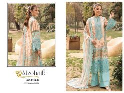 Alzohaib Rifa Vol 1 Indian Suit Catalog 4 pcs of Chiffon Cotton Lawn quality Shop Ethnic salwar Kameez Buy online Alzohaib Brand Chudidar Dress Materials from Surat’s biggest Wholesaler
