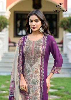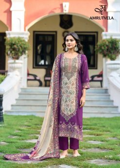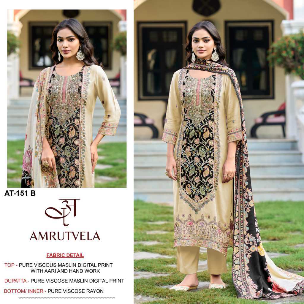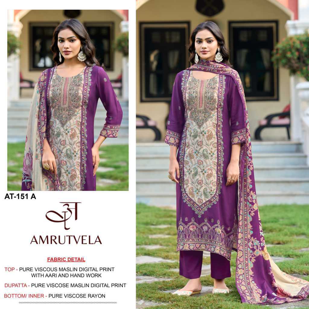 Amrutvela DN 151 A-D Indian Suit Catalog 4 pcs of Viscose Muslin Rayon quality Shop Ethnic salwar Kameez Buy online Amrutvela Brand Chudidar Dress Materials from Surat’s biggest Wholesaler