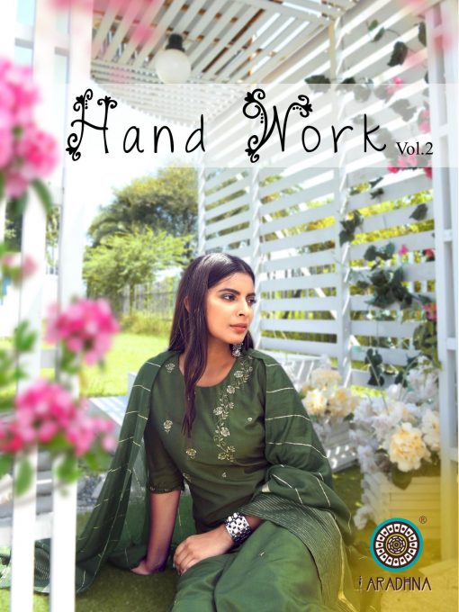 Aradhna Hand Work Vol 2 “Suratfabric.com” aims to be a leading e-whole-selling fashion brand. Engaged in selling luxury hi–fashion ethnic brand. Delivering Wholesale Suit Saree, Salwar Kameez & Kurti etc. We promise to keep fashion real. We focus on creating exotic catalogs with appealing brands. Our catalog comprises top class brands, which cover huge collection of designs. Our one and only aim is to blend comfort with style when it comes to tradition. These ladies wear are renowned for supreme quality fabric. Range of attractive colors & sizes and latest trend. We export our complete range of ladies wear to our valuable clients throughout the world. We sell extreme quality material in our range of products, which is sourced from our quality driven and reliable vendors. Wherever you are, come join the experience of our enhanced fashionable Shopping mart.