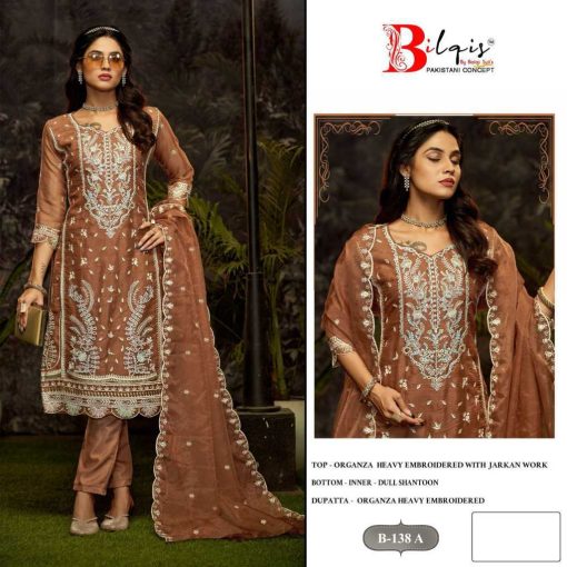 Bilqis B 138 A-D Indian Suit Catalog 4 pcs of Organza Shantoon quality Shop Ethnic salwar Kameez Buy online Bilqis Brand Chudidar Dress Materials from Surat’s biggest Wholesaler