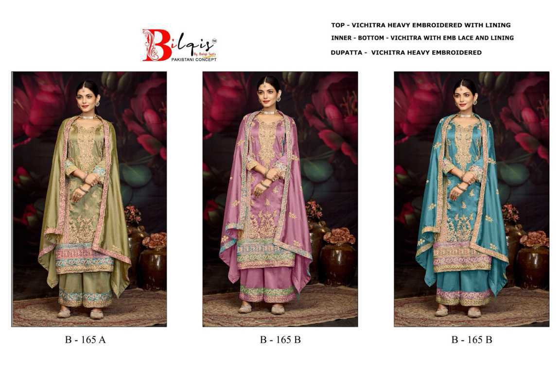Bilqis B 165 A-C Indian Suit Catalog 3 pcs of Fancy quality Shop Ethnic salwar Kameez Buy online Bilqis Brand Chudidar Dress Materials from Surat’s biggest Wholesaler
