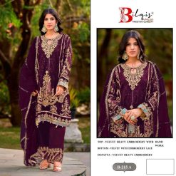 Bilqis B 215 A-D Indian Suit Catalog 4 pcs of Velvet quality Shop Ethnic salwar Kameez Buy online Bilqis Brand Chudidar Dress Materials from Surat’s biggest Wholesaler