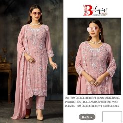 Bilqis B 222 A-D Indian Suit Catalog 4 pcs of Georgette Shantoon quality Shop Ethnic salwar Kameez Buy online Bilqis Brand Chudidar Dress Materials from Surat’s biggest Wholesaler