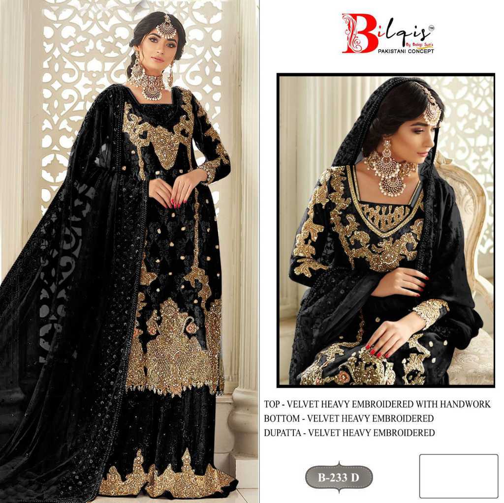 Bilqis B 233 A-D Velvet Salwar Suit Catalog 4 Pcs