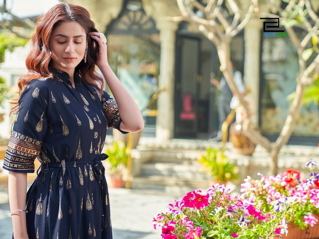 Blue Hills Gold Fish Indian Kurti Catalog 4 pcs of Rayon quality Shop Ethnic Kurti Kurta Buy online Kurtis by Blue Hills Brand Kurtis Tops Kurtas from Surat’s biggest Wholesaler