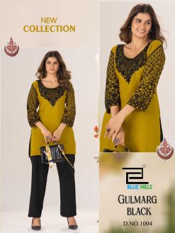 Blue Hills Gulmarg Black Buy Wholesale Kurti 4 pcs of Rayon quality Shop Ethnic Wholesale Kurti Kurta Buy online by Blue Hills Brand Kurtis Tops Kurtas from Surat’s biggest Wholesaler on Cash on Delivery Suratfabric.com