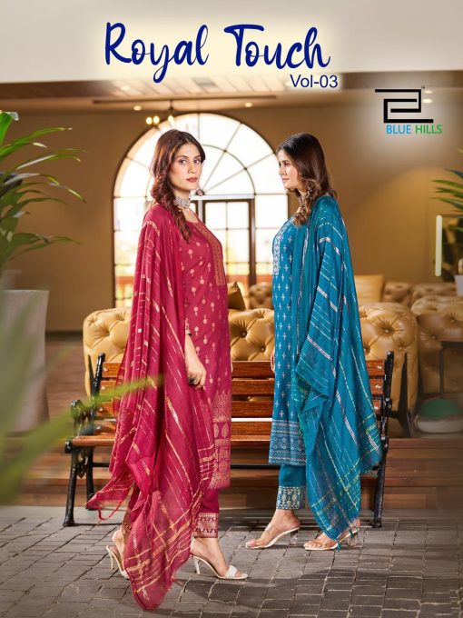 Blue Hills Royal Touch Vol 3 “Suratfabric.com” aims to be a leading e-whole-selling fashion brand. Engaged in selling luxury hi–fashion ethnic brand. Delivering Wholesale Suit Saree, Salwar Kameez & Kurti etc. We promise to keep fashion real. We focus on creating exotic catalogs with appealing brands. Our catalog comprises top class brands, which cover huge collection of designs. Our one and only aim is to blend comfort with style when it comes to tradition. These ladies wear are renowned for supreme quality fabric. Range of attractive colors & sizes and latest trend. We export our complete range of ladies wear to our valuable clients throughout the world. We sell extreme quality material in our range of products, which is sourced from our quality driven and reliable vendors. Wherever you are, come join the experience of our enhanced fashionable Shopping mart.