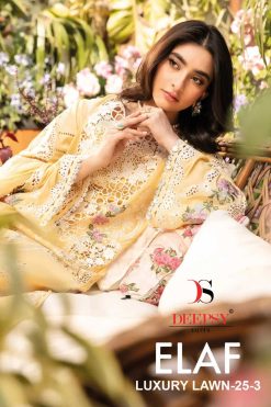 Deepsy Elaf Luxury Lawn 25 Vol 3 “Suratfabric.com” aims to be a leading e-whole-selling fashion brand. Engaged in selling luxury hi–fashion ethnic brand. Delivering Wholesale Suit Sarees, Salwar Kameez & Kurtis etc. We promise to keep fashion real. We focus on creating exotic catalogs with appealing brands. Our catalog comprises top class brands, which cover huge collection of designs. Our one and only aim is to blend comfort with style when it comes to tradition. These ladies wear are renowned for supreme quality fabric. Range of attractive colors & sizes and latest trend. We export our complete range of ladies wear to our valuable clients throughout the world. We sell extreme quality material in our range of products, which is sourced from our quality driven and reliable vendors. Wherever you are, come join the experience of our enhanced fashionable Shopping mart.