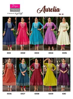 Diya Trends Aurelia Vol 1 by Kajal Style Rayon Kurti Catalog 10 Pcs