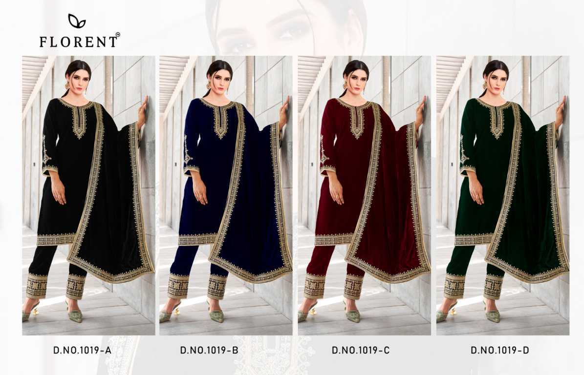 Florent DN 1019 A-D Indian Suit Catalog 4 pcs of Velvet quality Shop Ethnic salwar Kameez Buy online Florent Brand Chudidar Dress Materials from Surat’s biggest Wholesaler
