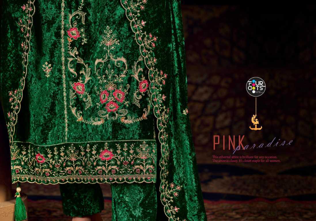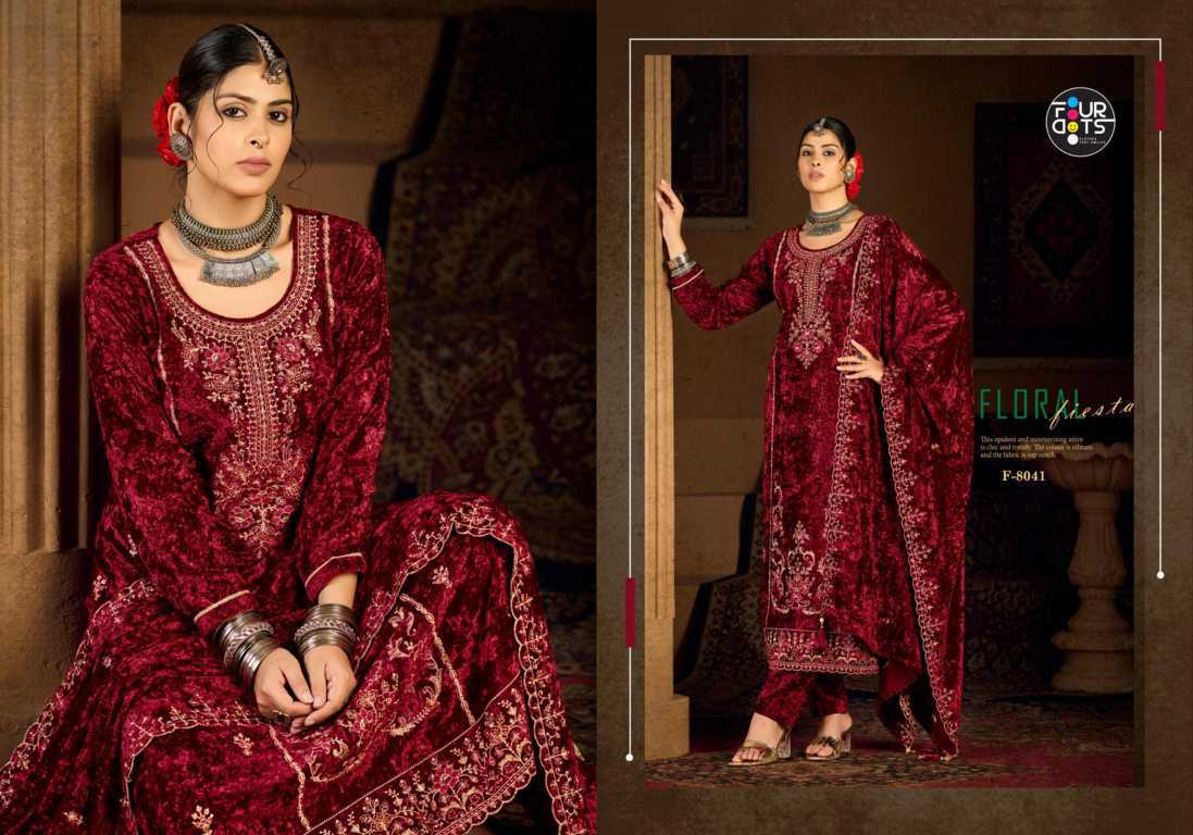 Four Dots Roman Indian Suit Catalog 4 pcs of Velvet quality Shop Ethnic salwar Kameez Buy online Four Dots Brand Chudidar Dress Materials from Surat’s biggest Wholesaler