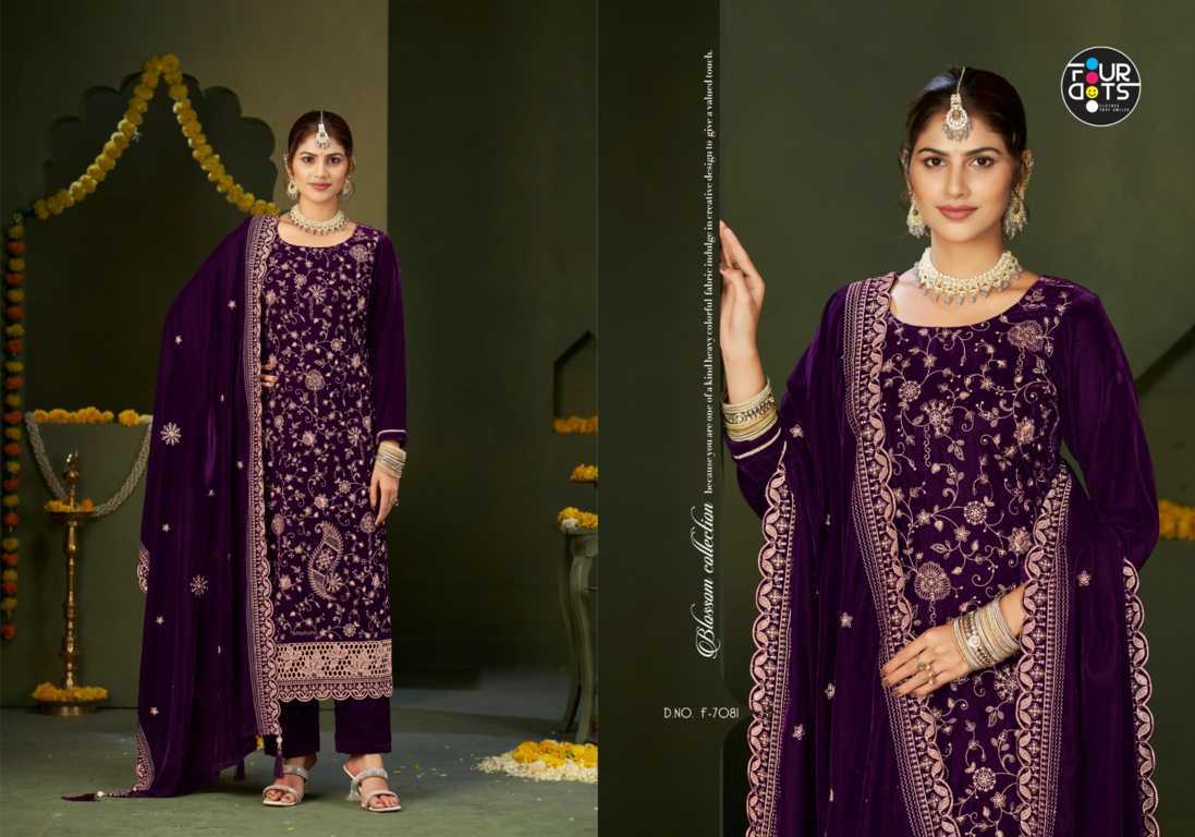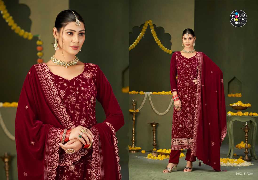 Four Dots Zilpah Indian Suit Catalog 4 pcs of Viscose Velvet quality Shop Ethnic salwar Kameez Buy online Four Dots Brand Chudidar Dress Materials from Surat’s biggest Wholesaler