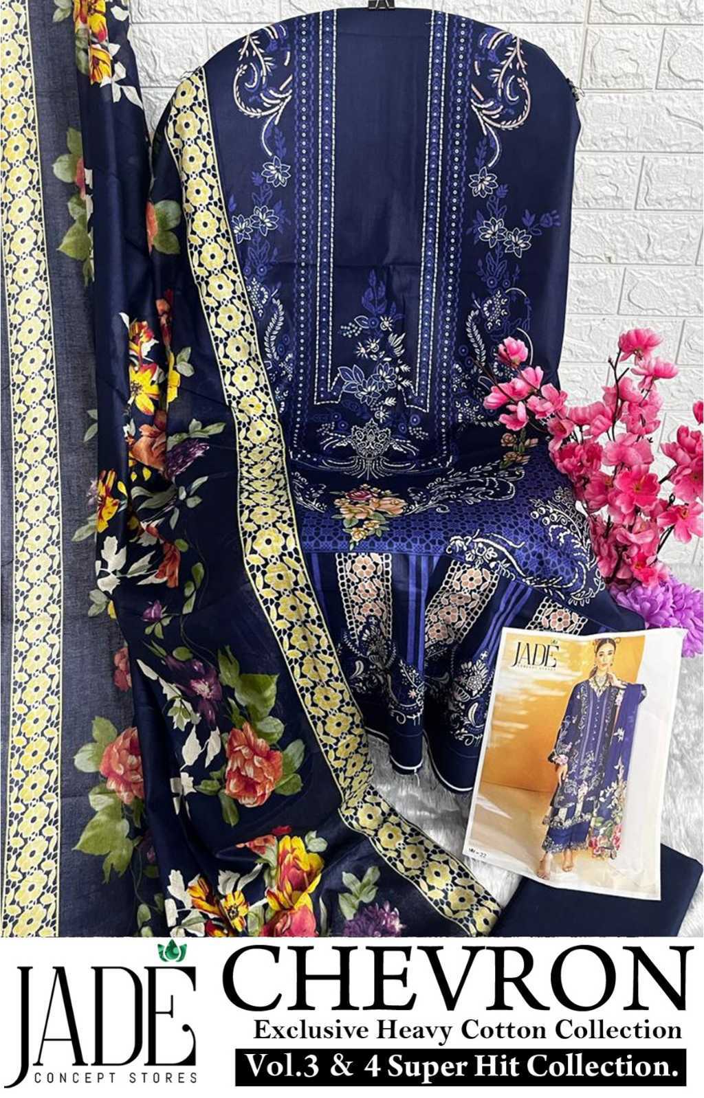 Jade Chevron Exclusive Heavy Cotton Collection Vol 3 & 4 Super Hit Collection Indian Suit Catalog 6 pcs of Cotton Lawn quality Shop Ethnic salwar Kameez Buy online Jade Brand Chudidar Dress Materials from Surat’s biggest Wholesaler