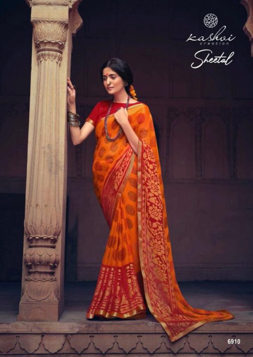 About this product: Kashvi Sheetal Saree Catalog 10 pcs is from Kashvi Brand. We are selling it at lowest & cheapest Wholesale prices. It’s made of Chiffon qualities. The manufacturer is well known and the quality is pre-tested and checked.