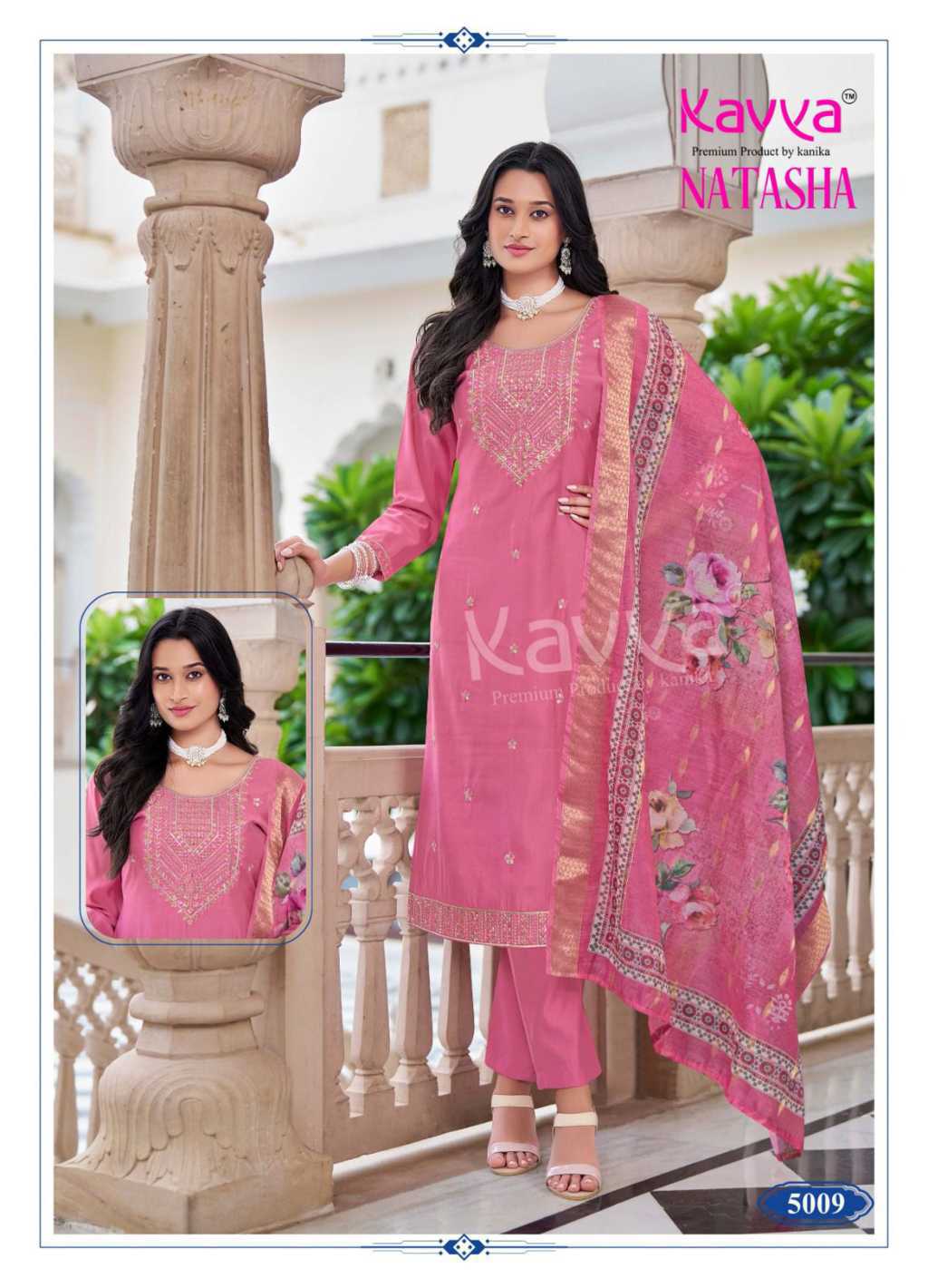 Kavya Natasha Vol 5 Indian Suit Catalog 10 pcs of Silk Chanderi quality Shop Ethnic salwar Kameez Buy online Kavya Brand Chudidar Dress Materials from Surat’s biggest Wholesaler