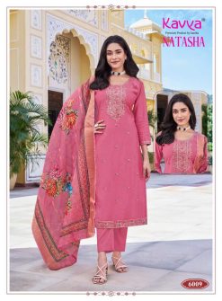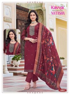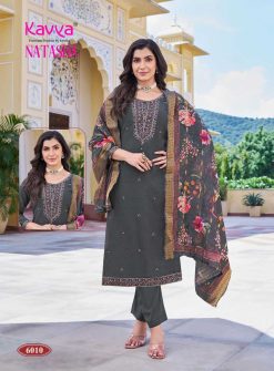 Kavya Natasha Vol 6 Indian Suit Catalog 10 pcs of Silk Chanderi quality Shop Ethnic salwar Kameez Buy online Kavya Brand Chudidar Dress Materials from Surat’s biggest Wholesaler