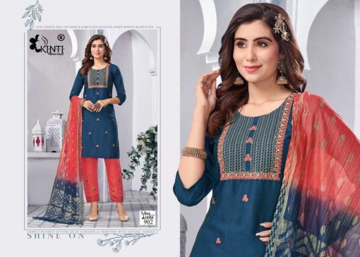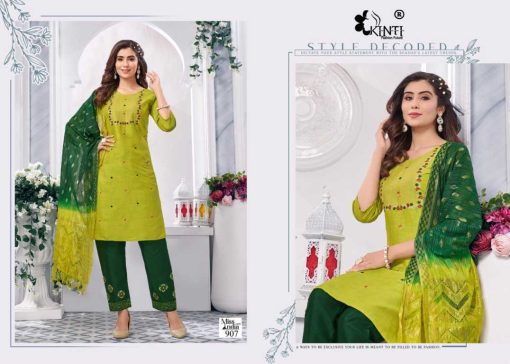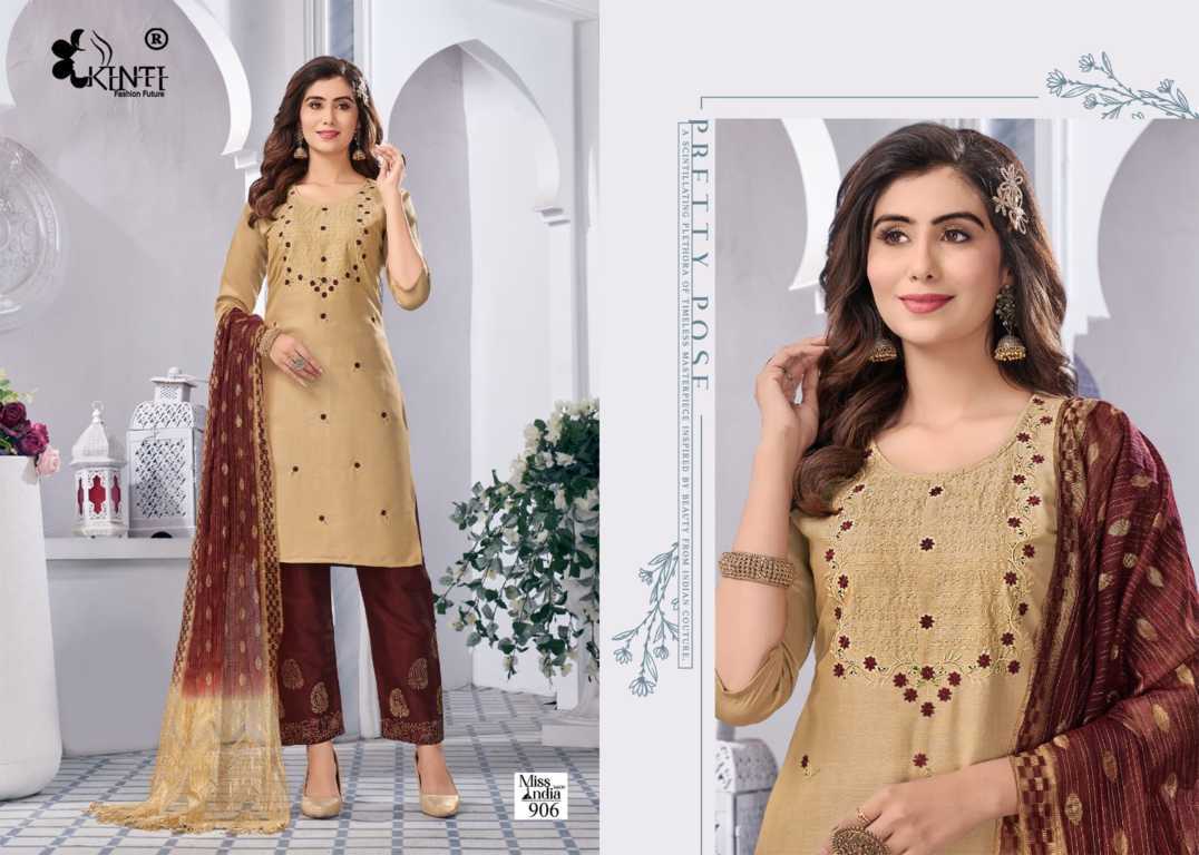 Kinti Miss India Vol 9 “Suratfabric.com” aims to be a leading e-whole-selling fashion brand. Engaged in selling luxury hi–fashion ethnic brand. Delivering Wholesale Suit Saree, Salwar Kameez & Kurti etc. We promise to keep fashion real. We focus on creating exotic catalogs with appealing brands. Our catalog comprises top class brands, which cover huge collection of designs. Our one and only aim is to blend comfort with style when it comes to tradition. These ladies wear are renowned for supreme quality fabric. Range of attractive colors & sizes and latest trend. We export our complete range of ladies wear to our valuable clients throughout the world. We sell extreme quality material in our range of products, which is sourced from our quality driven and reliable vendors. Wherever you are, come join the experience of our enhanced fashionable Shopping mart.