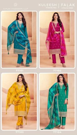 Kuleesh Falak Indian Suit Catalog 4 pcs of Silk Chiffon Shantoon quality Shop Ethnic salwar Kameez Buy online Kuleesh Brand Chudidar Dress Materials from Surat’s biggest Wholesaler