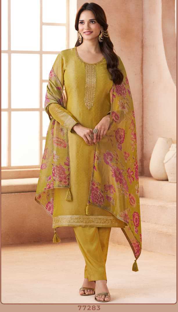 Kuleesh Kanchi Vol 2 Indian Suit Catalog 4 pcs of Silk Shantoon quality Shop Ethnic salwar Kameez Buy online Kuleesh Brand Chudidar Dress Materials from Surat’s biggest Wholesaler