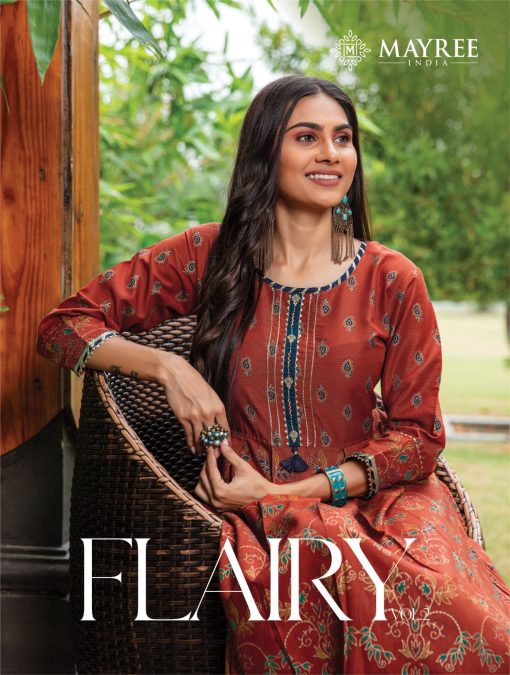 Mayree India Flairy Vol 2 “Suratfabric.com” aims to be a leading e-whole-selling fashion brand. Engaged in selling luxury hi–fashion ethnic brand. Delivering Wholesale Suit Saree, Salwar Kameez & Kurti etc. We promise to keep fashion real. We focus on creating exotic catalogs with appealing brands. Our catalog comprises top class brands, which cover huge collection of designs. Our one and only aim is to blend comfort with style when it comes to tradition. These ladies wear are renowned for supreme quality fabric. Range of attractive colors & sizes and latest trend. We export our complete range of ladies wear to our valuable clients throughout the world. We sell extreme quality material in our range of products, which is sourced from our quality driven and reliable vendors. Wherever you are, come join the experience of our enhanced fashionable Shopping mart.