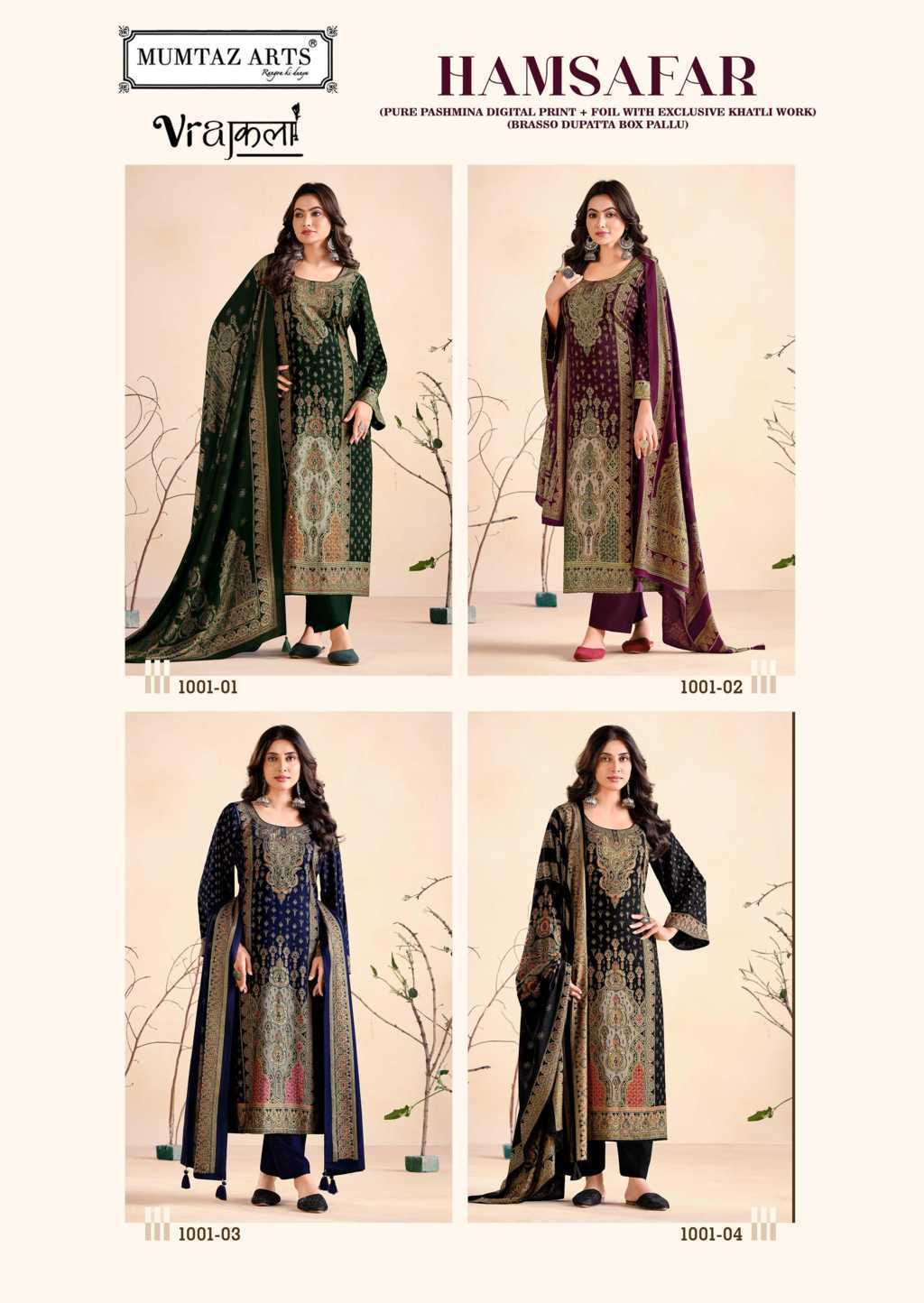 Mumtaz Arts Hamsafar Indian Suit Catalog 4 pcs of Viscose Pashmina quality Shop Ethnic salwar Kameez Buy online Mumtaz Arts Brand Chudidar Dress Materials from Surat’s biggest Wholesaler