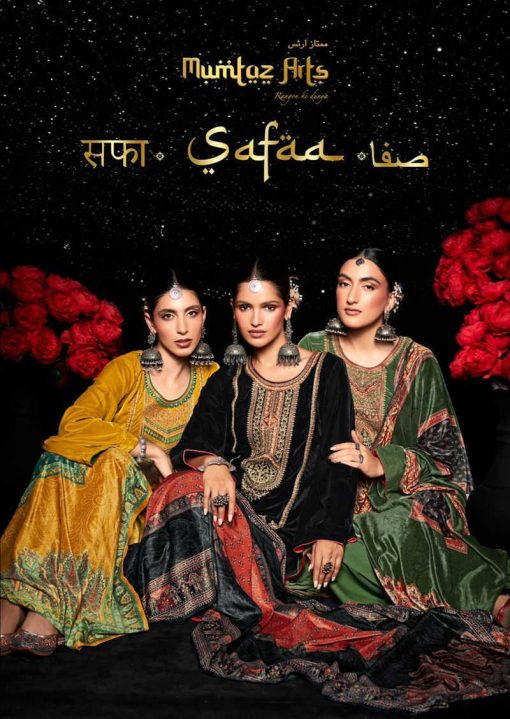 Mumtaz Arts Safaa Velvet Vol 1 Buy Wholesale Suits of brand Mumtaz Arts. Dress Materials, Salwar Kameez, Ethnic Textile Fabrics, at Cheapest lowest prices from Wholesalers Manufacturers Exporters from India Surat Textile Market