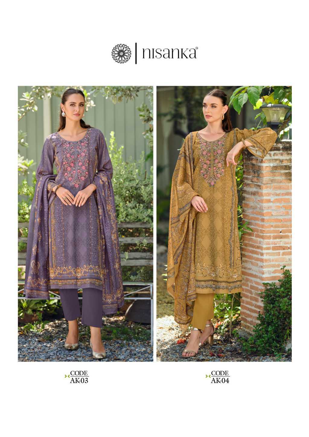 Nisanka Aykaa Indian Suit Catalog 4 pcs of Viscose Cotton Lawn quality Shop Ethnic salwar Kameez Buy online Nisanka Brand Chudidar Dress Materials from Surat’s biggest Wholesaler