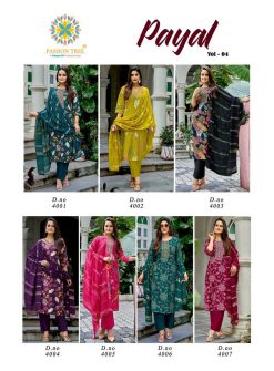 Passion Tree Payal Vol 4 “Suratfabric.com” aims to be a leading e-whole-selling fashion brand. Engaged in selling luxury hi–fashion ethnic brand. Delivering Wholesale Suit Saree, Salwar Kameez & Kurti etc. We promise to keep fashion real. We focus on creating exotic catalogs with appealing brands. Our catalog comprises top class brands, which cover huge collection of designs. Our one and only aim is to blend comfort with style when it comes to tradition. These ladies wear are renowned for supreme quality fabric. Range of attractive colors & sizes and latest trend. We export our complete range of ladies wear to our valuable clients throughout the world. We sell extreme quality material in our range of products, which is sourced from our quality driven and reliable vendors. Wherever you are, come join the experience of our enhanced fashionable Shopping mart.