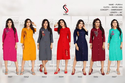 Purvi Vol 4 Indian Kurti Catalog 7 pcs of Rayon quality Shop Ethnic Kurti Kurta Buy online Kurtis by SS Brand Kurtis Tops Kurtas from Surat’s biggest Wholesaler