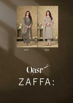 Qasr Zaffa Shop Online Ethnic Salwar Suit Catalog 8 pcs. Wholesale Qasr Indian Suits. We deal in Kurtis, Sarees, Dresses Materials, Leggings, Designer salwar kameez.