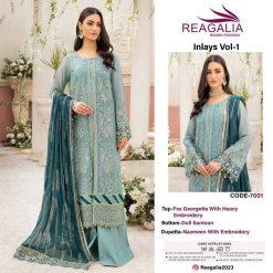 Reagalia Inlayas Vol 1 Indian Suit Catalog 3 pcs of Georgette Nazneen Net quality Shop Ethnic salwar Kameez Buy online Reagalia Brand Chudidar Dress Materials from Surat’s biggest Wholesaler
