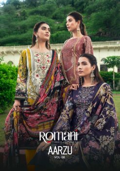 About this product: Romani Aarzu Vol 8 Salwar Suit Catalog 8 pcs is from Romani Brand. We are selling it at lowest & cheapest Wholesale prices. It’s made of Cotton qualities. The manufacturer is well known and the quality is pre-tested and checked.
