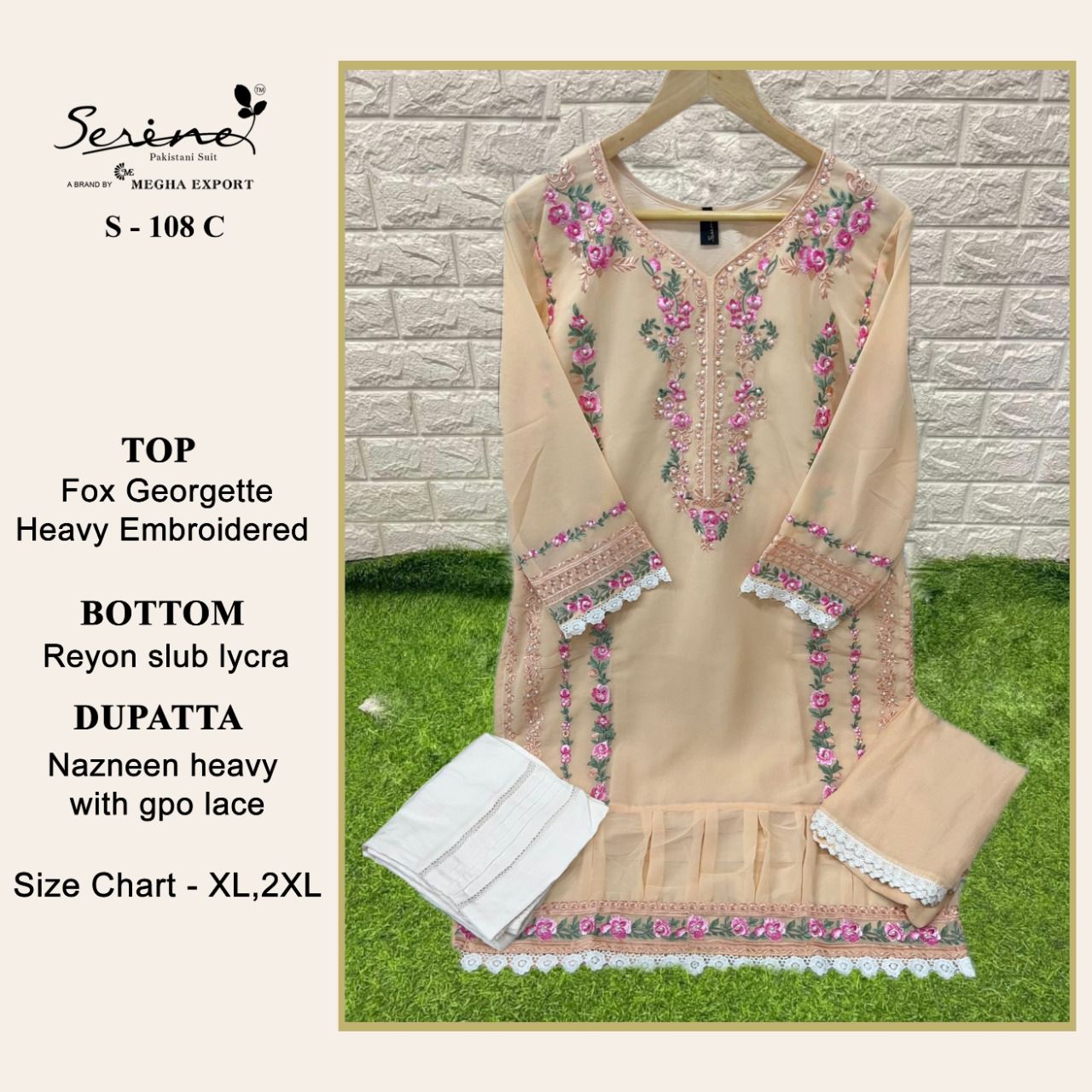 Serene S 108 “Suratfabric.com” aims to be a leading e-whole-selling fashion brand. Engaged in selling luxury hi–fashion ethnic brand. Delivering Wholesale Suit Saree, Salwar Kameez & Kurti etc. We promise to keep fashion real. We focus on creating exotic catalogs with appealing brands. Our catalog comprises top class brands, which cover huge collection of designs. Our one and only aim is to blend comfort with style when it comes to tradition. These ladies wear are renowned for supreme quality fabric. Range of attractive colors & sizes and latest trend. We export our complete range of ladies wear to our valuable clients throughout the world. We sell extreme quality material in our range of products, which is sourced from our quality driven and reliable vendors. Wherever you are, come join the experience of our enhanced fashionable Shopping mart.