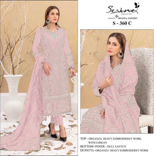 About this product: Serene S 360 A-D Salwar Suit Catalog 4 pcs is from Serene Brand. We are selling it at lowest & cheapest Wholesale prices. It’s made of Organza Shantoon qualities. The manufacturer is well known and the quality is pre-tested and checked.