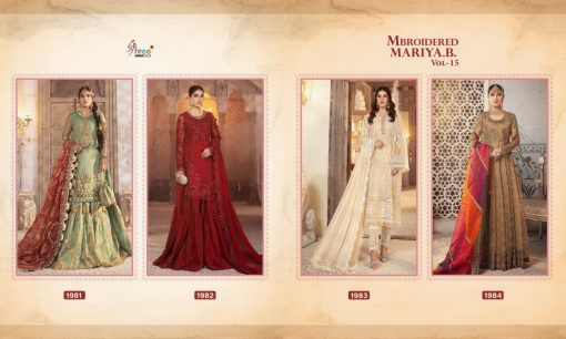 Shree Fabs Mbroidered Mariya B Vol 15 Indian Suit Catalog 4 pcs of Shantoon Nazneen quality Shop Ethnic salwar Kameez Buy online Shree Fabs Brand Chudidar Dress Materials from Surat’s biggest Wholesaler