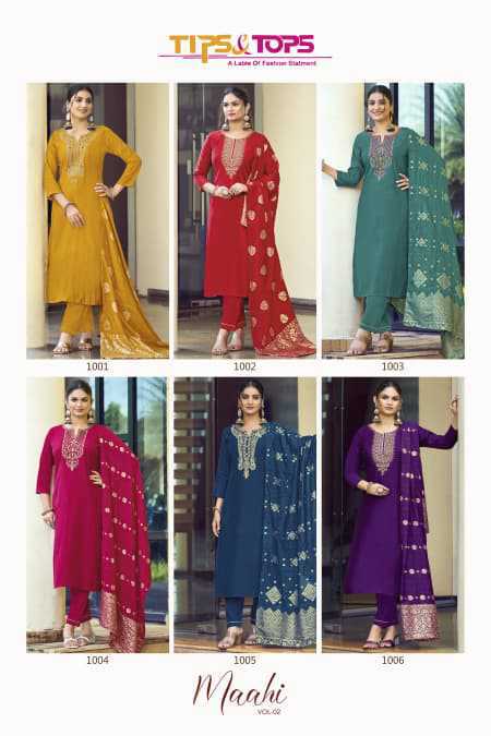Tips and Top Maahi Vol 2 Silk Kurti with Dupatta Bottom Catalog 6 Pcs