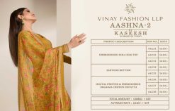 Vinay Kaseesh Aashna Vol 2 Buy Wholesale Suits of brand Vinay Kaseesh. Dress Materials, Salwar Kameez, Ethnic Textile Fabrics, at Cheapest lowest prices from Wholesalers Manufacturers Exporters from India Surat Textile Market