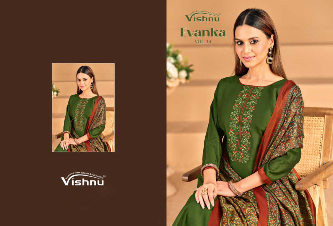 Vishnu Evanka Vol 14 Buy Wholesale Suits of brand Vishnu. Dress Materials, Salwar Kameez, Ethnic Textile Fabrics, at Cheapest lowest prices from Wholesalers Manufacturers Exporters from India Surat Textile Market