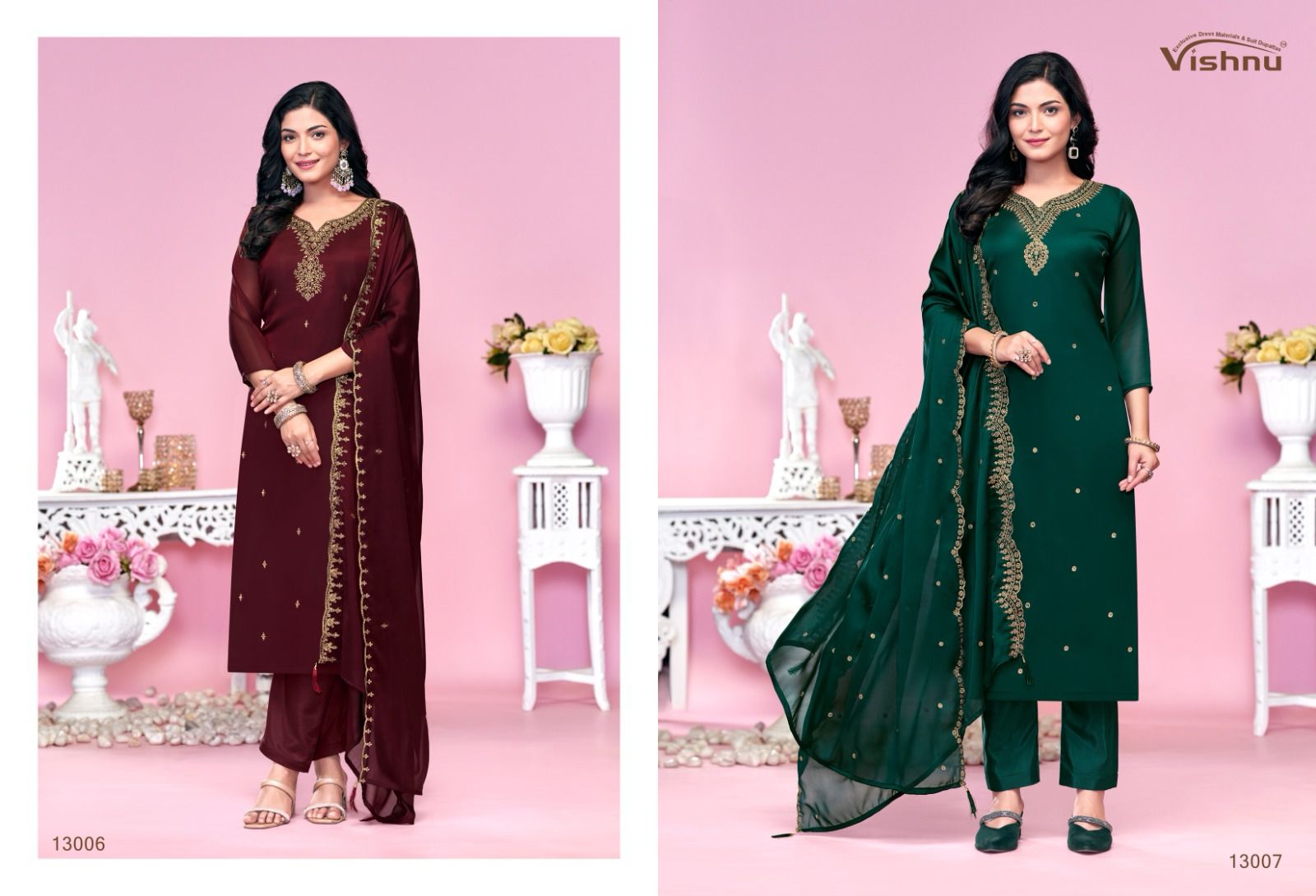 Vishnu Shaheen Indian Suit Catalog 12 pcs of Fancy Shantoon quality Shop Ethnic salwar Kameez Buy online Vishnu Brand Chudidar Dress Materials from Surat’s biggest Wholesaler