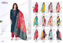 Vishnu Vyomika Vol 2 Indian Suit Catalog 12 pcs of Silk Shantoon Jacquard Chanderi quality Shop Ethnic salwar Kameez Buy online Vishnu Brand Chudidar Dress Materials from Surat’s biggest Wholesaler