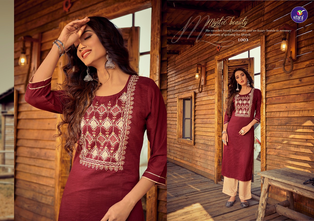 Vitara Rose Marrei Shop Online Ethnic Kurti Catalog 6 pcs. Wholesale Vitara Indian Kurtis. We deal in Kurtis, Sarees, Dresses Materials, Leggings, Designer salwar kameez.