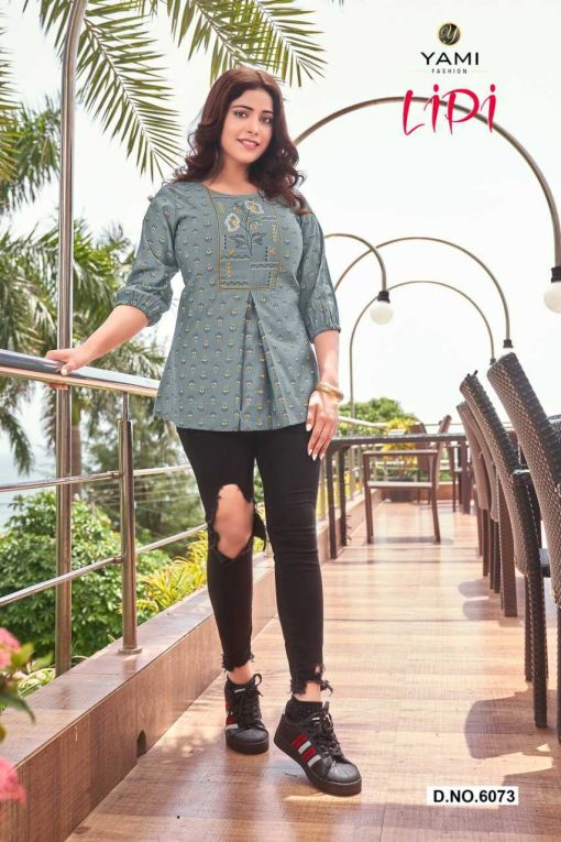 Yami Fashion Lipi Buy Wholesale Tops of brand Yami Fashion. Leggings, Palazzo, Topss, Ethnic Ready to Wear at Cheapest lowest prices from Wholesalers Manufacturers Exporters from India Surat Textile Market