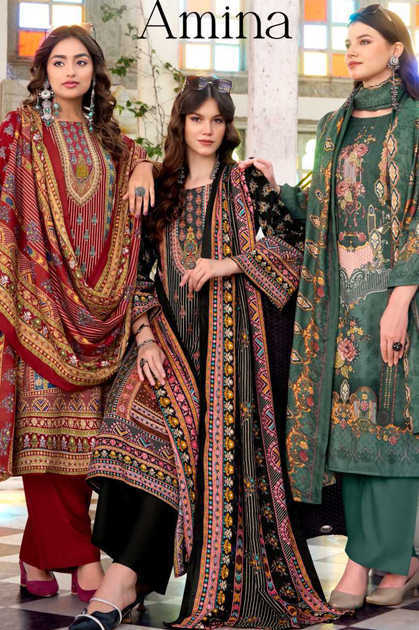 Zulfat Amina Indian Suit Catalog 6 pcs of Pashmina quality Shop Ethnic salwar Kameez Buy online Zulfat Brand Chudidar Dress Materials from Surat’s biggest Wholesaler