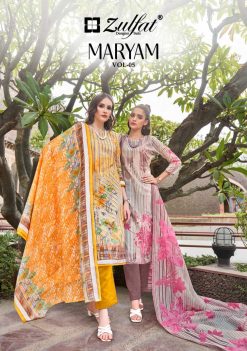 Zulfat Maryam Vol 5 “Suratfabric.com” aims to be a leading e-whole-selling fashion brand. Engaged in selling luxury hi–fashion ethnic brand. Delivering Wholesale Suit Sarees, Salwar Kameez & Kurtis etc. We promise to keep fashion real. We focus on creating exotic catalogs with appealing brands. Our catalog comprises top class brands, which cover huge collection of designs. Our one and only aim is to blend comfort with style when it comes to tradition. These ladies wear are renowned for supreme quality fabric. Range of attractive colors & sizes and latest trend. We export our complete range of ladies wear to our valuable clients throughout the world. We sell extreme quality material in our range of products, which is sourced from our quality driven and reliable vendors. Wherever you are, come join the experience of our enhanced fashionable Shopping mart.